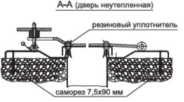 Крепление дверей в проемах осуществляется приваркой рамы двери к закладным деталям или к металлической окантовке проема.