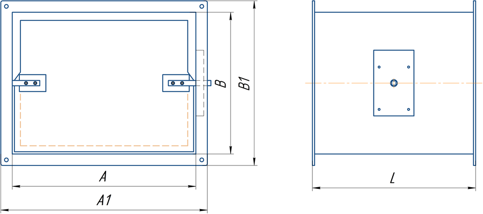 Размер Ах В- соответствуют основным присоединительным размерам трубопроводов прямоугольного сечения