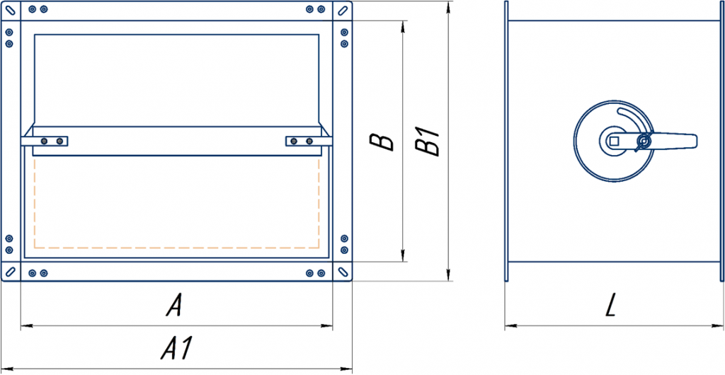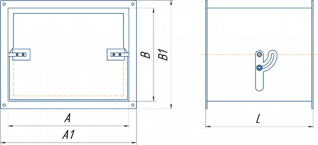 Размер Ах В- соответствуют основным присоединительным размерам трубопроводов прямоугольного сечения