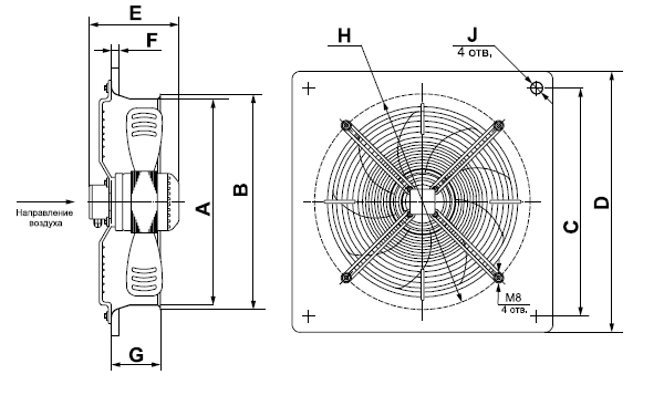 | ВО-4М630В | 220/50 | 6400-11435 | 200-62 | 1360 | 750 | 3,5 | 805х805х218 | 14,0 | 78 |